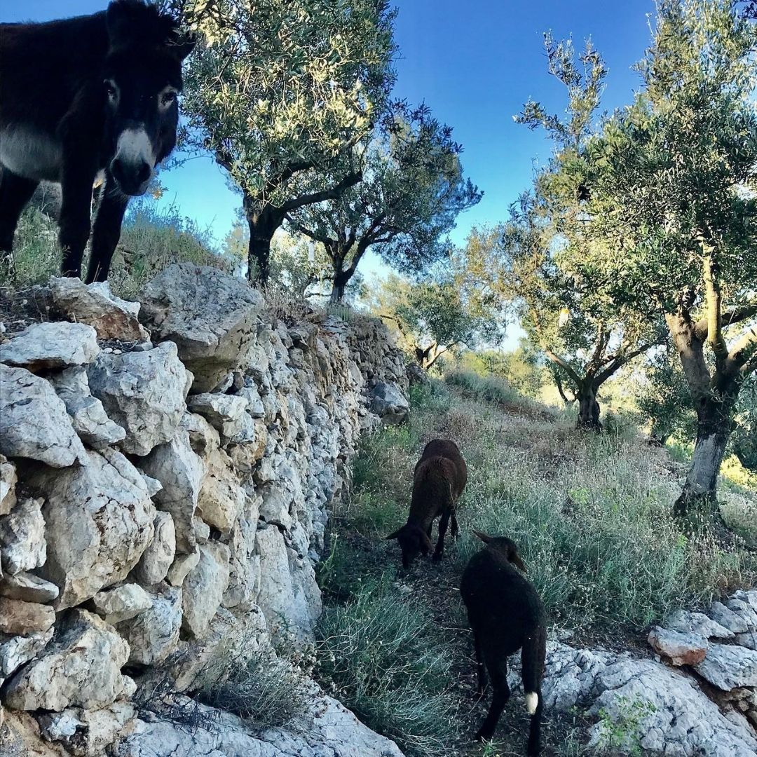 Conreem oliveres de manera agroecològica, generant un agroecosistema el més sostenible possible dintre de l'entorn de muntanya mediterrània en el que es troba la finca, amb una especial cura per la qualitat de l'oliva, per a la posterior elaboració d'un oli elaborat en verd i d'extracció en fred forçat de característiques úniques i que expressen el territori.
