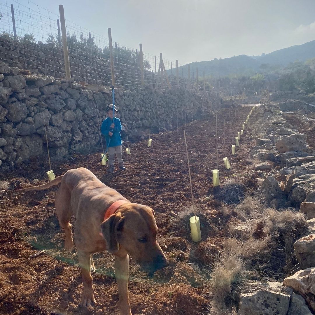 D'una passió pel vi, formació teòrica i pràctica i molt afany per recuperar patrimoni agrari de muntanya, ens donava energia per emprendre aquest projecte de viticultura, diversificant la nostra producció d'oli d'oliva a les parcel·les abancalades amb marges de pedra seca que ens envolten, buscant les característiques idònies per obtenir un raïm excepcional. L'alçada, el vent i la proximitat al mar donen com a resultat les parcel·les plantades que tenim i que reflecteixen la dura tasca de la nostra primera vinya jove plantada de Garnatxa-Gironet i Shiraz, la vinya del bosc 2021.